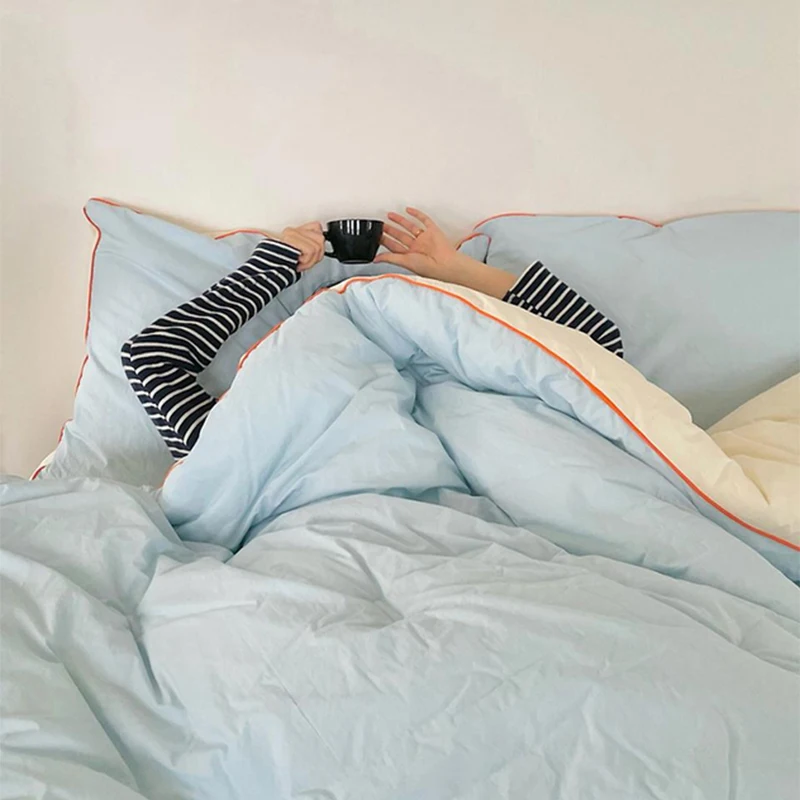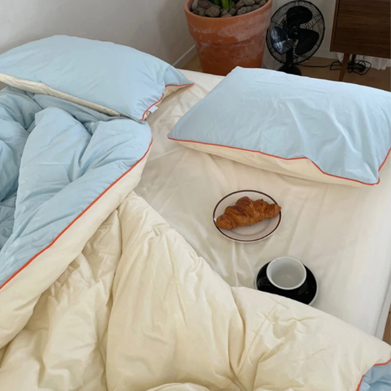 All Seasons Color-matching Design Lightweight Soft 100% Cotton Quilt Duvet Bedding Set |