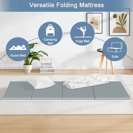 This folding foam mattress cover is more than a simple pad; it is designed as a versatile folding mattress that can be used as a home guest bed, outdoor camping mat, yoga mat and sofa topper. In the expanded size of 100cm200cm4cm, it provides a full-length sleep or exercise surface, suitable for adults and teenagers. When folded to 50cm100cm16cm, it becomes compact enough to store in closets, car trunks or small storerooms, which is especially convenient for apartments and shared spaces.
