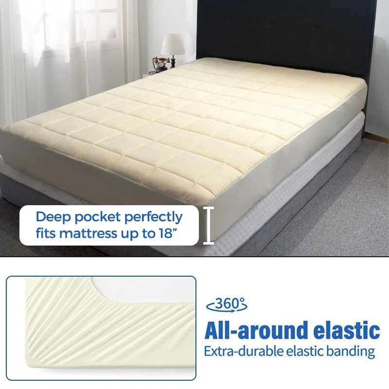 The Cool Quilted Mattress Topper combines premium Tencel+nylon fabric with polyester filling to deliver superior breathability, softness and temperature regulation for all-season comfort in bedrooms and living rooms. Designed for home, hospital, hotel and school applications, this OEKO-TEX STANDARD 100 certified mattress topper features anti-bacteria, air-permeable and anti-dust mite protection ideal for high-occupancy environments. With 500pcs MOQ, custom packing options and 7-10 day sample delivery, this cool breathable quilted mattress topper provides luxury cooling performance from professional Chinese textile manufacturing suitable for bulk hospitality and institutional bedding projects.